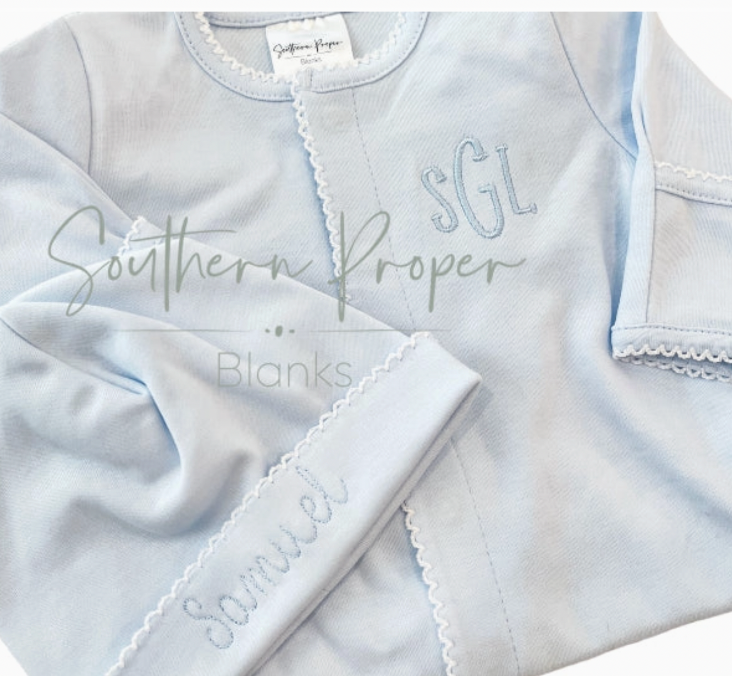 Southern Proper Blanks. 100% organic cotton baby footies with decorative picot trim